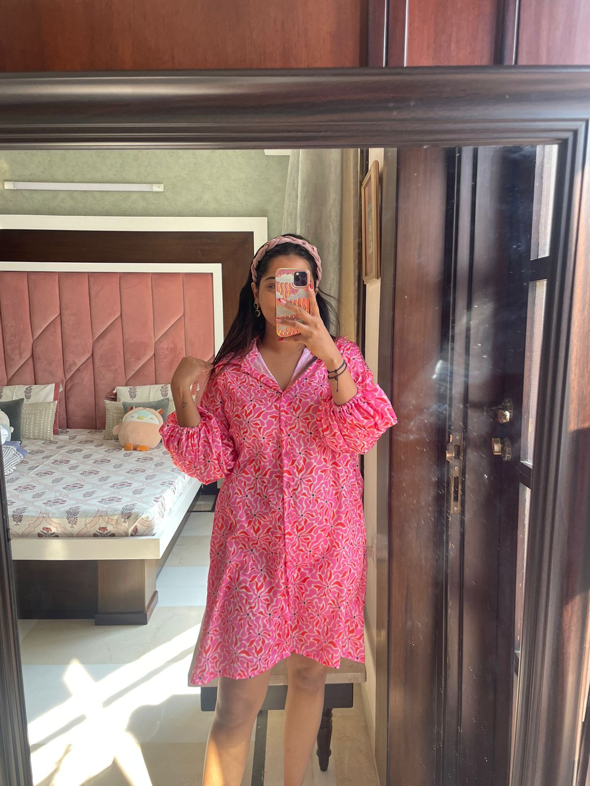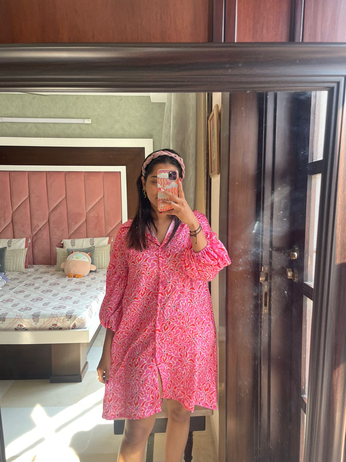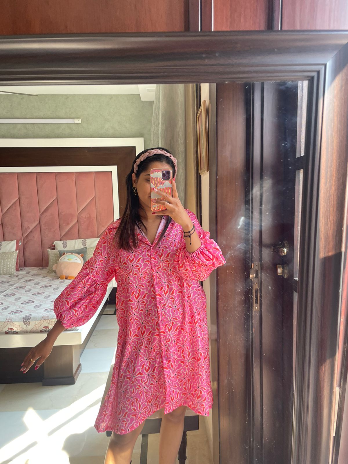 Rose Satin Shirt Dress